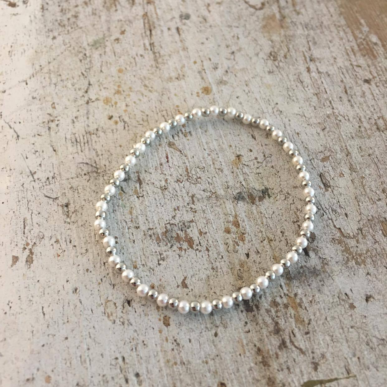 Armbånd perler sølv/hvid – Al-Ke