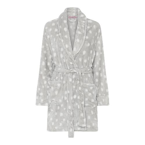 Lækker blød kort badekåbe med indvendig slåom bindebånd, bælte og lommer.