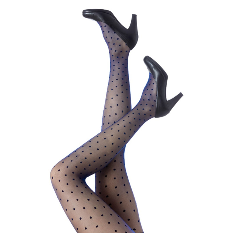 Blå plus size strømpebukser med prikker fra Festival. En meget elastisk strømpebuks med høj talje.