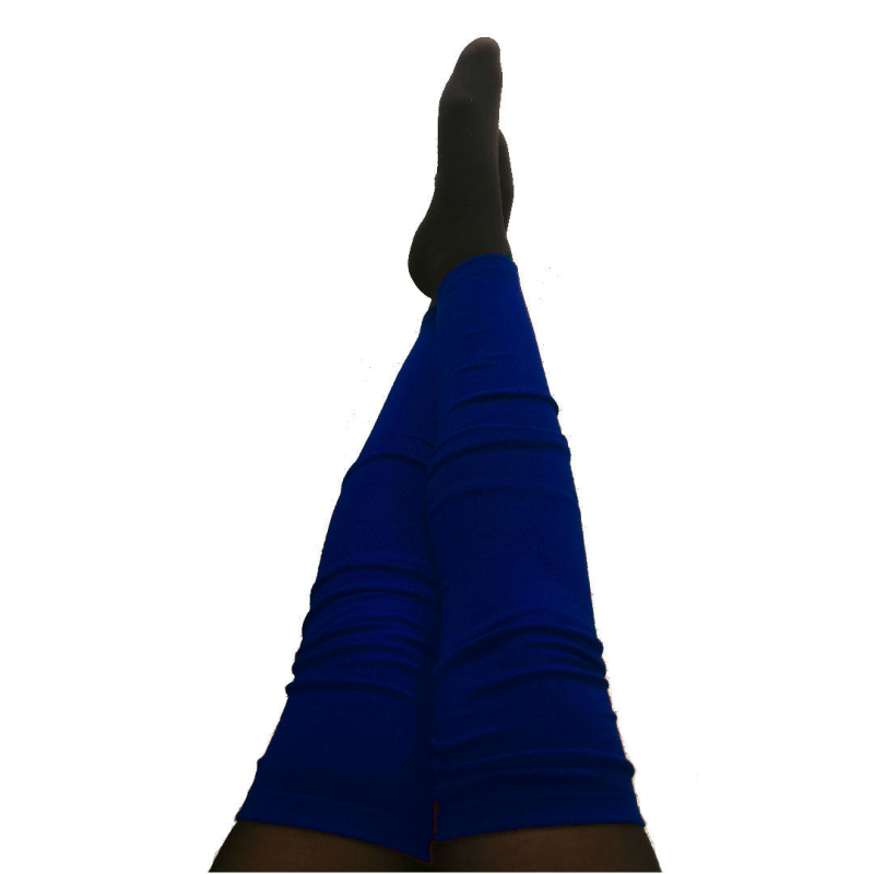 Lange strikkede benvarmere i blå uld til voksneFarve: blåLængde: 65 cmOmkreds: 30-60 cm kan strækkesMateriale: 80 % uld 20 % stræk nylonKan vaskes i maskine på uldprogram