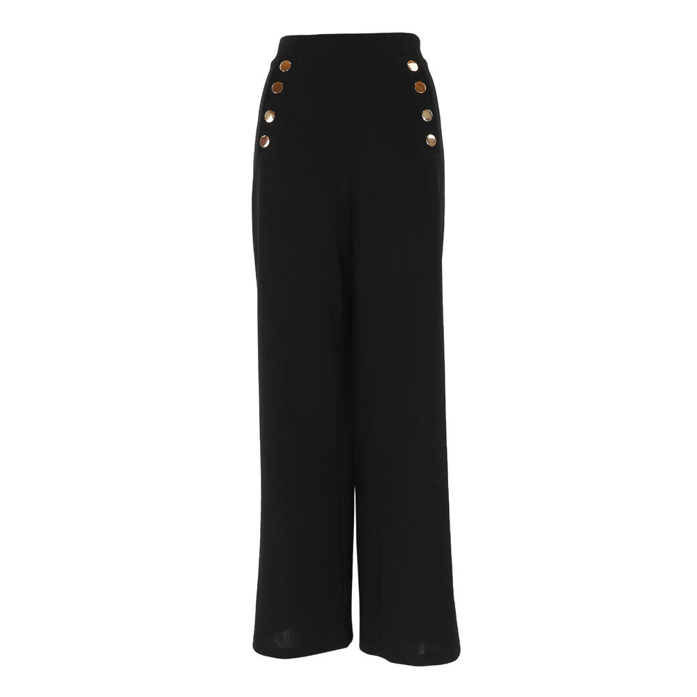 Stilrene bukser fra Continue med et eksklusivt og feminint udtryk. Den elastiske talje sikrer høj komfort og en flot pasform, mens de dekorative guldfarvede knapper tilfører et elegant touch.