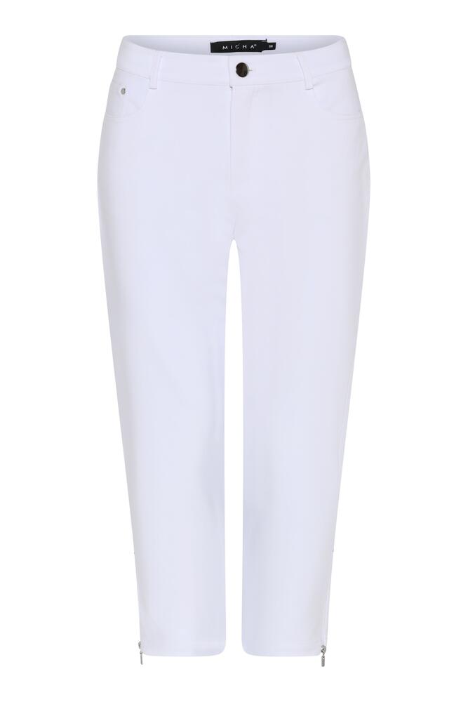 Bukserne har bæltestropper, lommer foran og bagpå, lynlås forneden i buksebenet og lukkes med en enkelt knap og lynlås.