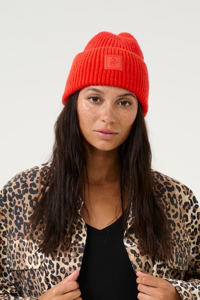 Lækker og enkel hue i strik med Culture ikon på fronten.