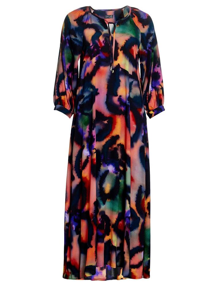 Skøn kjole til kvinder fra du Milde. Kjolen har V-udskæring med bindebånd, 3/4 lange ærmer med fast manchet og lommer i sidesømmen.