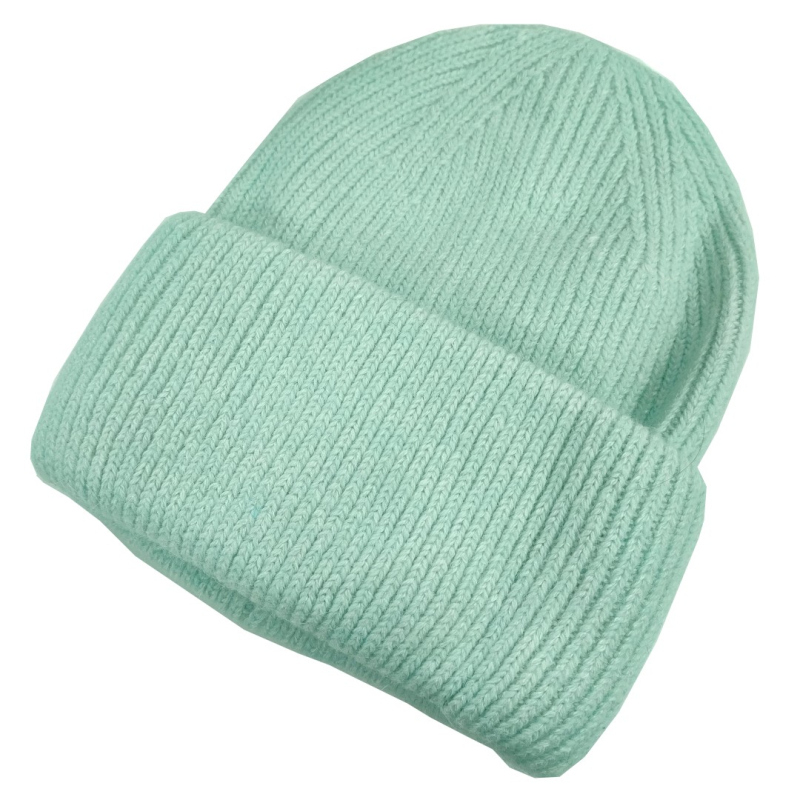 Strikket hue i blød angora blanding.