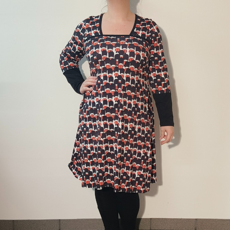 A-formet plus size kjole med garder. Tokyo er en A-formet kjole med firkantet udskæringKjolen sidder til over barmen og bliver løs om mave og hofter.