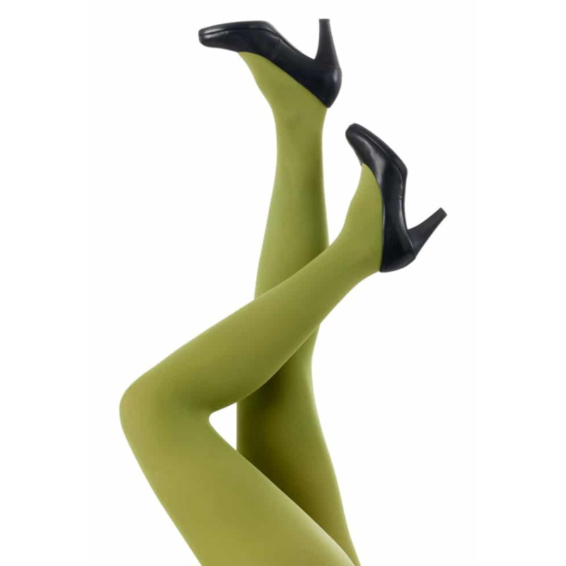 Mikrofiber strømpebukser fra Festival i en frisk ærte grøn farve. En meget elastisk strømpebuks med høj talje Strømpebukserne er 40 denier og derfor vil huden skinne let igennem uden dog at være gennemsigtig.