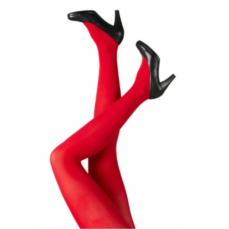 Røde mikrofiber strømpebukser fra Festival. En meget elastisk strømpebuks med høj talje Strømpebukserne er 40 denier og derfor vil huden skinne let igennem uden dog at være gennemsigtig.