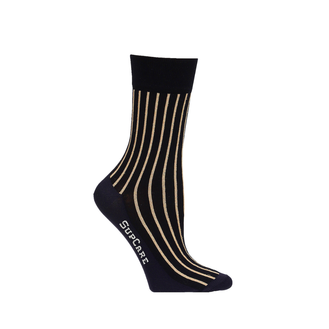 SupCare Korte Støttestrømper med Guld Striber, Bomuld – SupCare