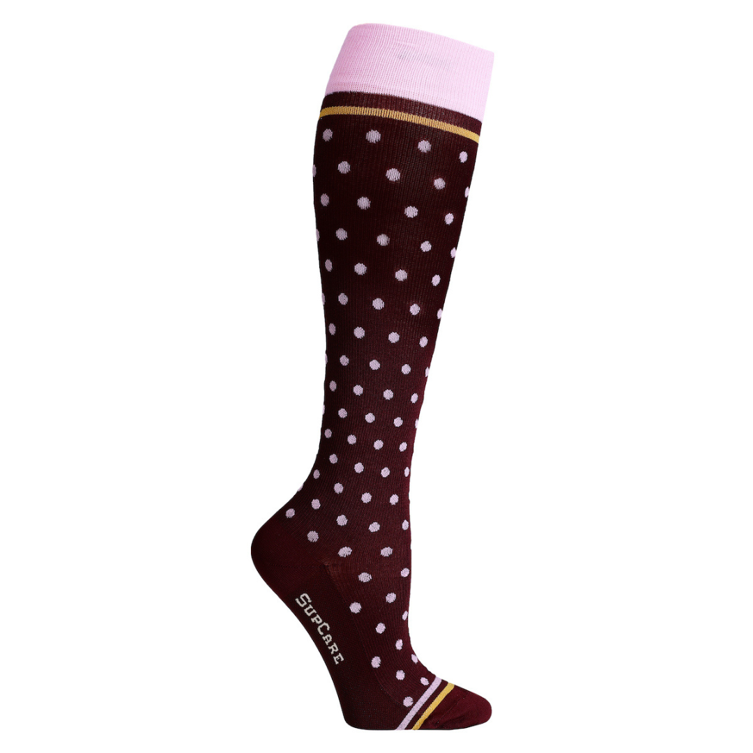 SupCare Støttestrømper i Bordeaux med Lyserøde Prikker, Bambus – SupCare