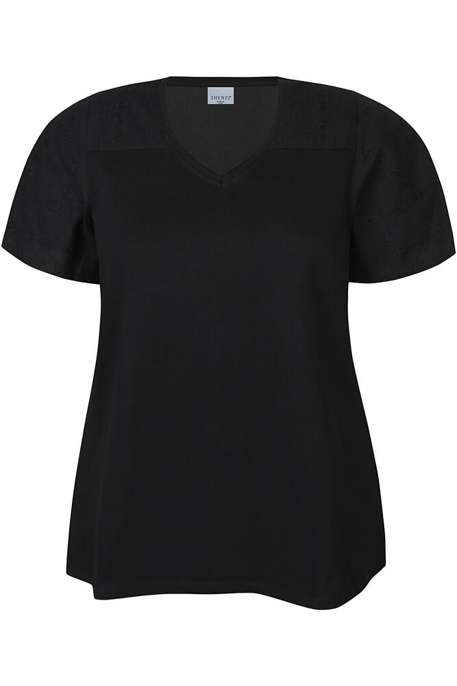 T-shirtens ærmer samt skuldre har fine detaljer i form af et broderet look og er mere let i kvaliteten.